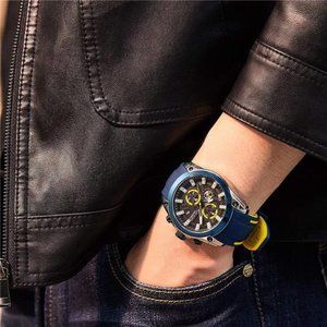🧿Fashion Watch for Men: Quartz movement, accurate time keeping. Hardlex wear-resistant crystal and waterproof soft silicone band with a safety buckle, alloy case, multi-level literal design.
