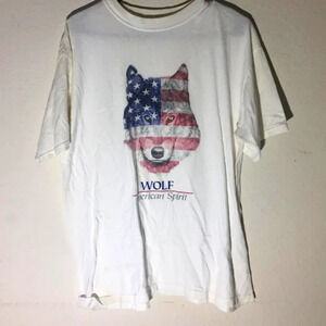 Mens Anvil Shirt Size Large Wolf American Flag Spirit Trendy Animal Vintage