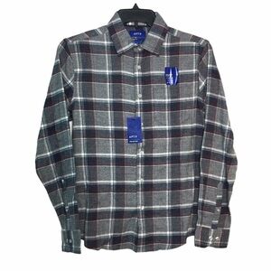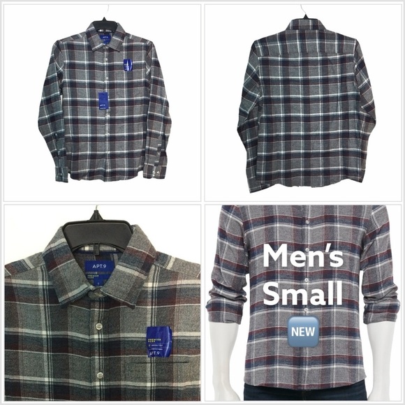 Men's Apt. 9 Small 34 - 36 Flannel Shirt Plaid Gray Blue Long Sleeve Stretch NWT