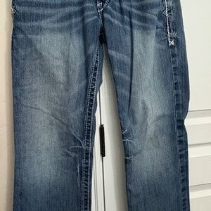 Men’s jeans in size 29 x 34. Excellent condition, barely worn, with no holes or stains. Classic Ariat quality, bootcut fit stacks nicely on boots, durable, perfect for gift-giving.