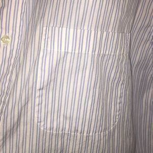 It is a Mens short sleeve blue & white striped button down shirt