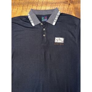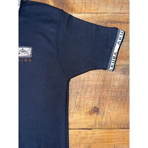 This black Aruba Fashion golf polo is in excellent pre-loved condition! No rips or stains! This is such a fun vacation polo! It has a fish on the front and has Aruba around the collar and sleeves. This is a lightweight shirt, and it has some nice stretch! Measurements are in the photos. Mens size large!
