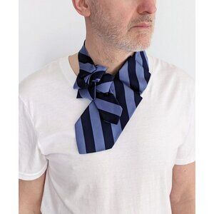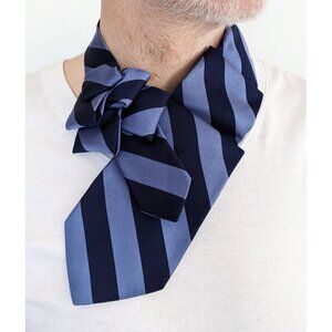 Our men's purple and navy silk, striped ascot tie, is the perfect amount of fabulous for any gentleman's wardrobe. Made from a silk necktie, this takes the conventional ascot and takes it up so many notches. We're talking bold, fun and fearless style that can be dressed up so many ways whether it's with a suit or jeans and a t-shirt.