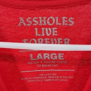 Men's Assholes Live Forever Short Sleeve Graphic T-Shirt in Red.