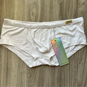 Men’s athletic boxer briefs. Full coverage upfront. 85/15 poly/spandex blend.