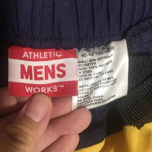 Mens Athletic Works Swim Trunks Vintage Navy Blue Yellow Outdoors Summer Spring