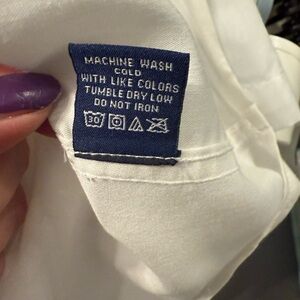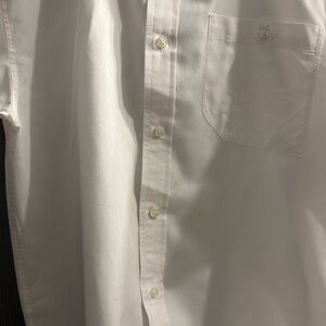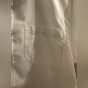 Men’s Attitude Gold short sleeve white button down shirt with front pocket with button. Size Large Machine Wash cold 60% cotton 40% poly