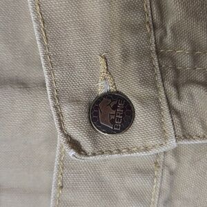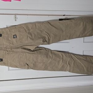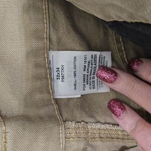 Men's BERNE WORK PANTS 32W×34L Good SHAPE!! SEE PICS!! STRONG DURABLE TAN Work Day Utility Pockets. Very small blemishes notes in pics!! Fast Shipping!!
