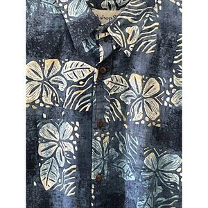 Men's BISHOP ST Apparel Cotton Aloha Tiki Floral Print Button Up Blue Shirt 3XL