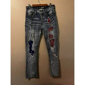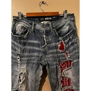 Men's BKE Aiden Distressed Red & Blue Bandana Bootleg Jeans Size 30 [EXCELLENT]