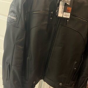 Men’s BNWT Harley-Davidson Black Leather motorcycle Jacket with hoodie