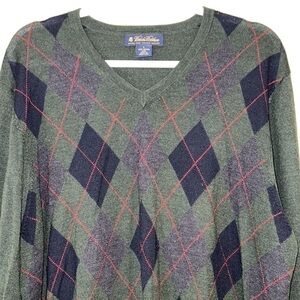 Mens BROOKS BROTHERS Italian merino Wool argyle sweater top size Large
