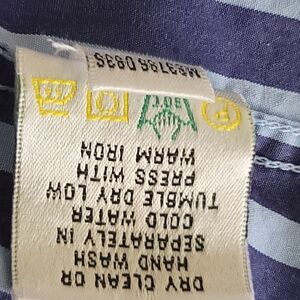 Men's BUGATCHI Blue + Stripe Shirt Shaped Fit Contrasting Collar Cuff Large Blue