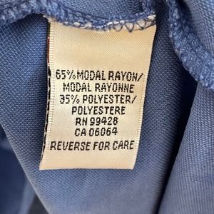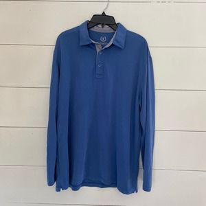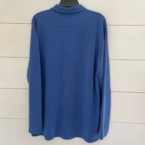 Gently preowned mens BUGATCHI Uomo royal blue long sleeve polo size XL. Fabric is 65% modal rayon and 35% polyester. It has a nice silky feel to it.