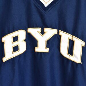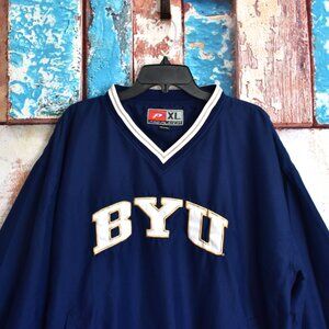 Men's BYU COUGARS Windbreaker Pullover V-Neck Embroidered Logo XLARGE Blue
