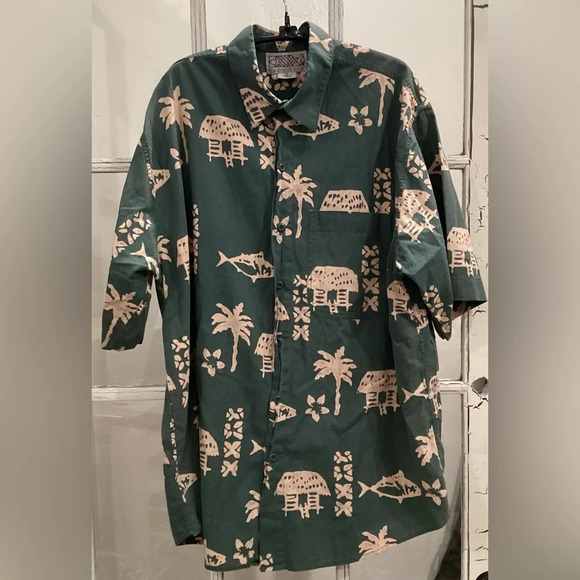 This Back East button-up shirt is the perfect addition to any casual wardrobe. With a spread collar and short sleeves, it's ideal for warm weather occasions. The multicolor print and tropical Hawaiian theme add a fun touch to the shirt, making it perfect for a day out on the town or a casual beach party. Made from 100% cotton, it's comfortable and breathable, ensuring you stay cool all day long. The shirt is available in size L and is a regular fit for men. It's perfect for those who are looking for a stylish and comfortable shirt that's both versatile and unique.