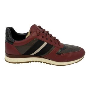 The Men's Bally Arnold Leather Color Block Sneaker in Burgundy 8.5D is a stylish and versatile casual shoe perfect for everyday wear. Made with high-quality leather and featuring a colorblock pattern, round toe shape, lace-up closure, and leather lining, these sneakers offer both comfort and durability. With a classic sneaker style and a brand like Bally, known for its quality craftsmanship and timeless designs, these shoes are sure to make a statement whether you're traveling or out for a casual day out.