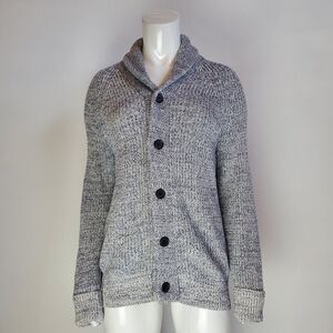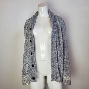 Banana Republic light gray knit shawl collar long-sleeved button-up cardigan. No pockets.