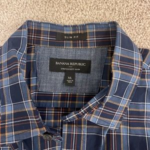 Men’s Banana Republic Oxford Button Up Shirt Plaid Blue Size XL Slim Fit