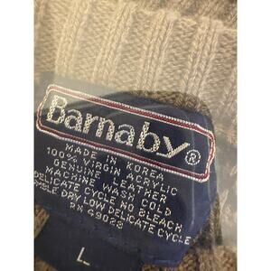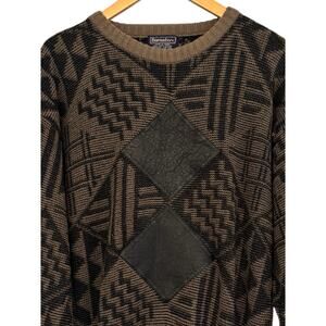 Mens Barnaby Acrylic Leather Grandpa Vintage Sweater Brown Black Large