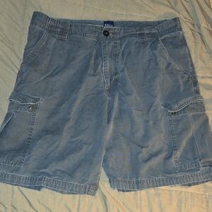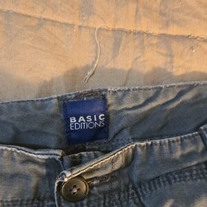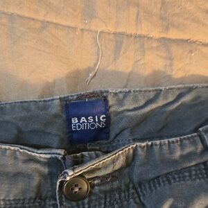 Experience comfort and style with these blue cargo shorts from Basic Editions, perfect for everyday wear. Crafted from soft cotton, they offer a relaxed fit ideal for casual outings. Enjoy the practicality and timeless appeal of these versatile shorts. Length 18", inseam 9.5"