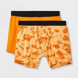 Pack of boxer briefs includes two mid-rise boxer briefs — one with orange beach print and the other in solid orange — both framed by black waistbands. They're made of cotton with stretch for breathable, flexible all-day comfort and sport fully elasticized waistbands for secure wear and a stay-put fit. If you’re not satisfied with any Target Owned Brand item, return it within one year with a receipt for an exchange or a refund.
