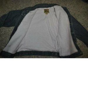 Mens Bear River Workwear Jacket Medium Blue Button Up Sherpa Lined Denim Jean