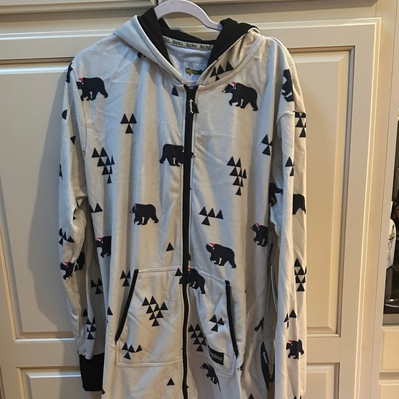 Men’s Beary Christmas Jumpsuit XL pjs !! Tipsy Elves with hood (onesies)!!
