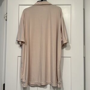 Elevate your casual wardrobe with this stylish beige polo shirt. Perfect for any occasion, this shirt offers comfort and a classic look. Good condition. No holes or stains that I can see. Please see pics.