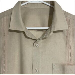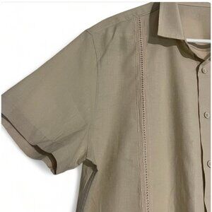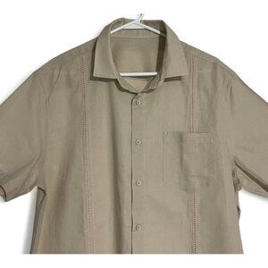 Mens Beige Short Sleeve Button-Up Shirt With Chest Pocket - Size L - New