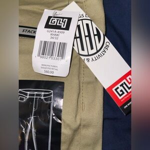 Stylish beige stacked jeans with unique detailing. Size 34/34