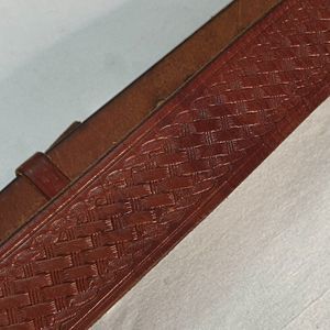 Mens Work Belt Large Waist Distressed Heavy Duty Tooled Leather Decorative Strap And Buckle Overlay