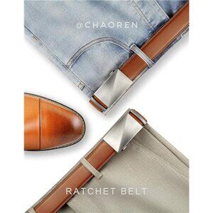*Effortless to Use: Experience the ultimate convenience with our black leather belt. Simply slide it into the sliding buckle, pull it through, and the click-it buckle automatically locks in place. Releasing the belt is just as easy - gently push the lever on the side of the automatic buckle, and the lock snaps shut. Enjoy the seamless simplicity and smoothness of our ratchet belt design.
