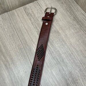 Mens Belt Size 46 Western Genuine Leather Hand Tooled Braided Buckle Brown