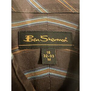 Mens Ben Sherman Long Sleeve Brown Striped Button Up Shirt Size 15 32-33 Size M