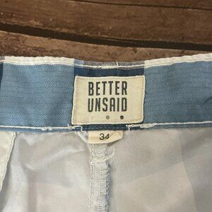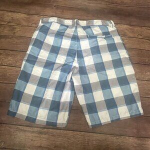 Men’s Better Unsaid Blue Madras Checkered Plaid Board Shorts Size 34