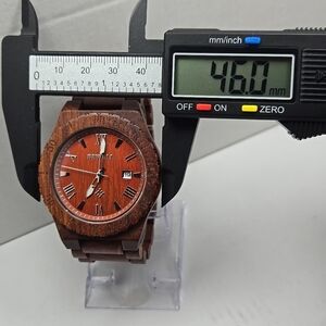Mens Bewell Zebra Wood 45mm Date Watch Analog Quartz Lightweight Handmade Unique