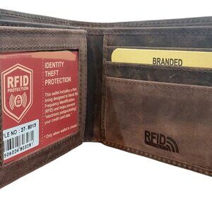 Men's Bi-Fold Genuine Cowhide Leather Wallet with RFID