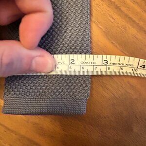 Men's Bibas Light Gray Knit Tie. Fabric is not indicated and likely cotton or polyester. Looks great with a casual jacket and jeans.