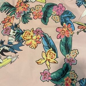 Bold floral-print with Batman and Robin skateboarding graphics for eye-catching flair