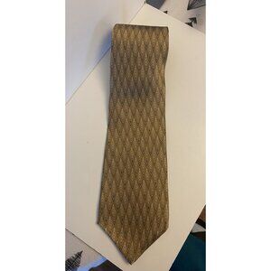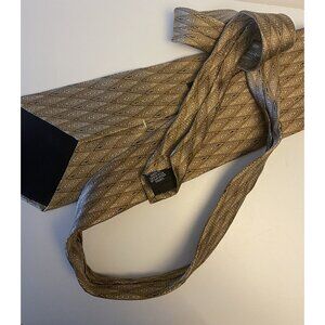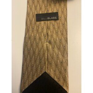 Mens Bill Blass 100% Silk Necktie Brown Navy 57Lx4W Abstract Peacock Feathers
