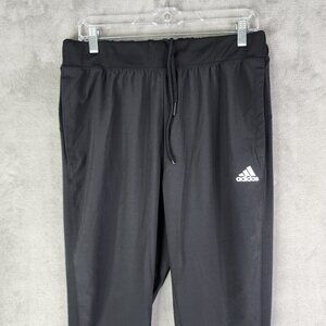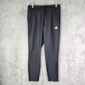 Mens Black Adidas Running Track Pants Athletic Training Wear Polyester Size L