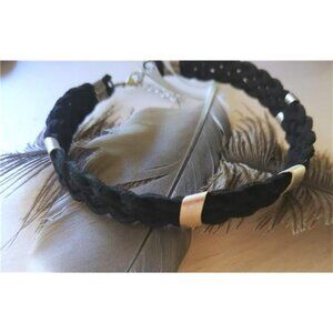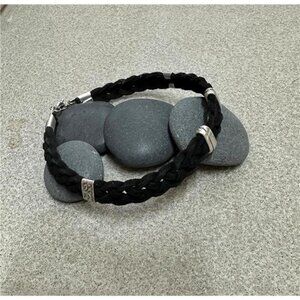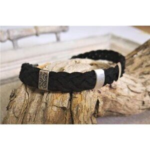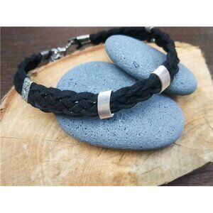 Men's Black Anklet With Silver Charm Tubes, Braided Soft Leather Men Ankle