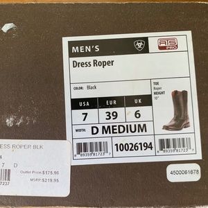 Men`s Black Ariat Roper Size 7D Dress Boots