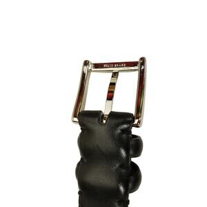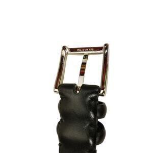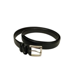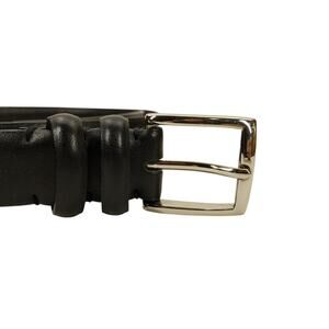 Mens Black Belt Size 42 Silver Tone Brass Buckle Milled Grain Leather 1" W