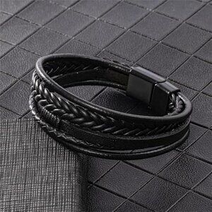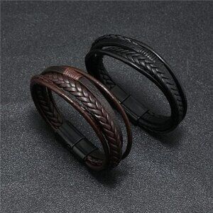 Men's Black Leather Multi-Strand Bracelet Casual Brown Braided Bracelet Handcrafted. Material bracelet: Leather Material clasp: Zinc alloy Colour bracelet: Black,Brown Colour clasp: Silver,Black Size:Length 8.3’’/Length 9’’ Magnetic clasp closure.
