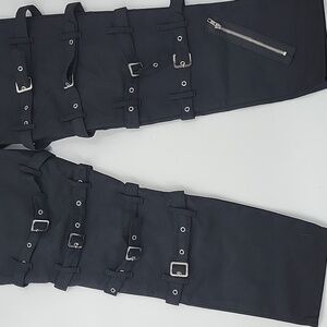 Elevate your style with these black buckle strap pants. Perfect for a bold, edgy look. NWT!