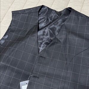 Black checked vest with beautiful sheen. Size M, pit to pit 19 1/2in, length from back 24 in. New.