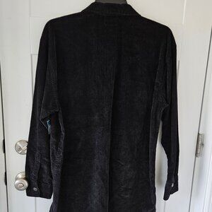 This is a mens corduroy button down jacket or shacket, 100% cotton, medium to heavy gauge cord, very soft feel, deep black, two front flap pockets, no lining. Size Big and Tall LT ( Large Tall)