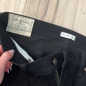 Brand new without tags mens Abercrombie and fitch black distressed stretch skinny jean